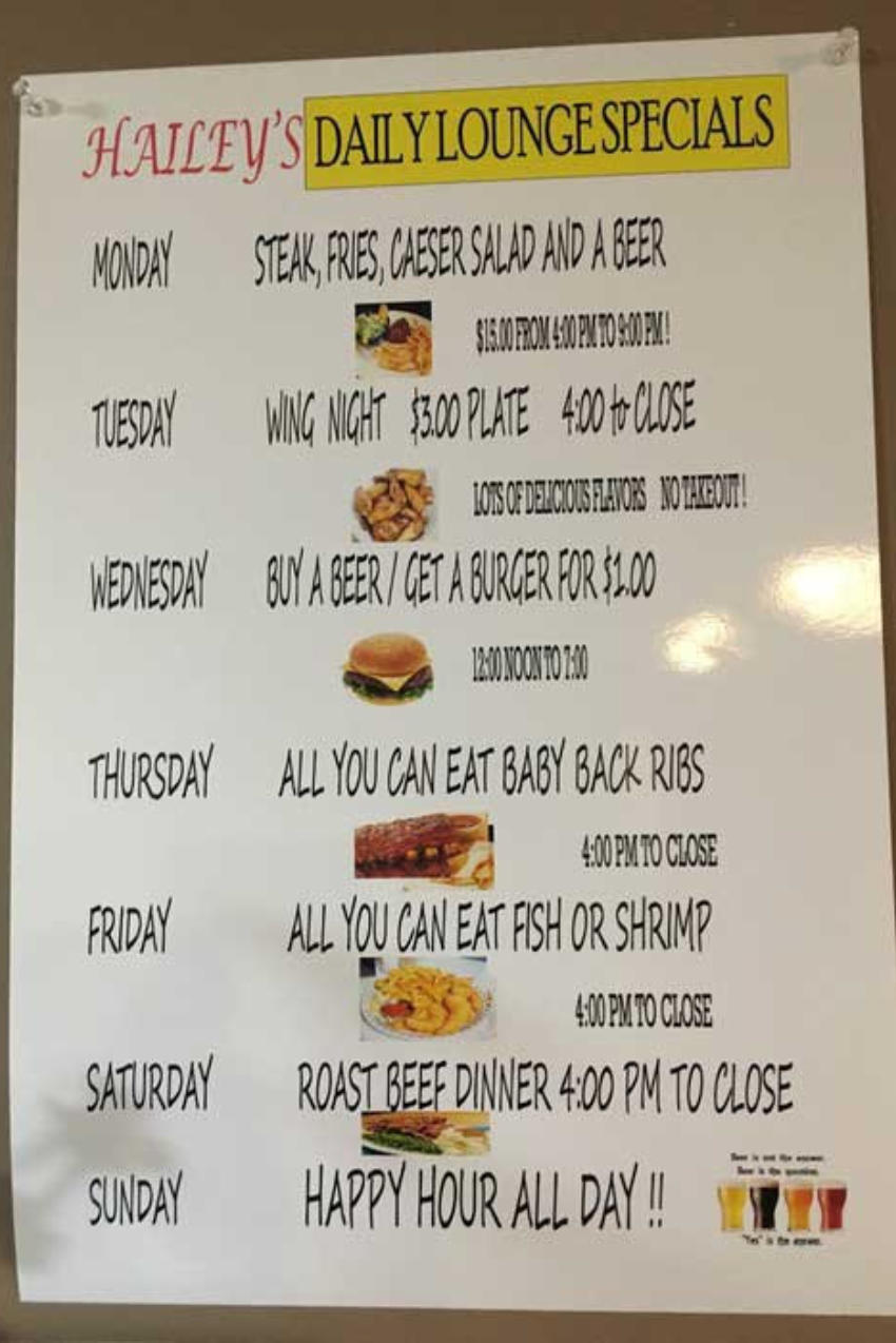 Bar Fare Menu